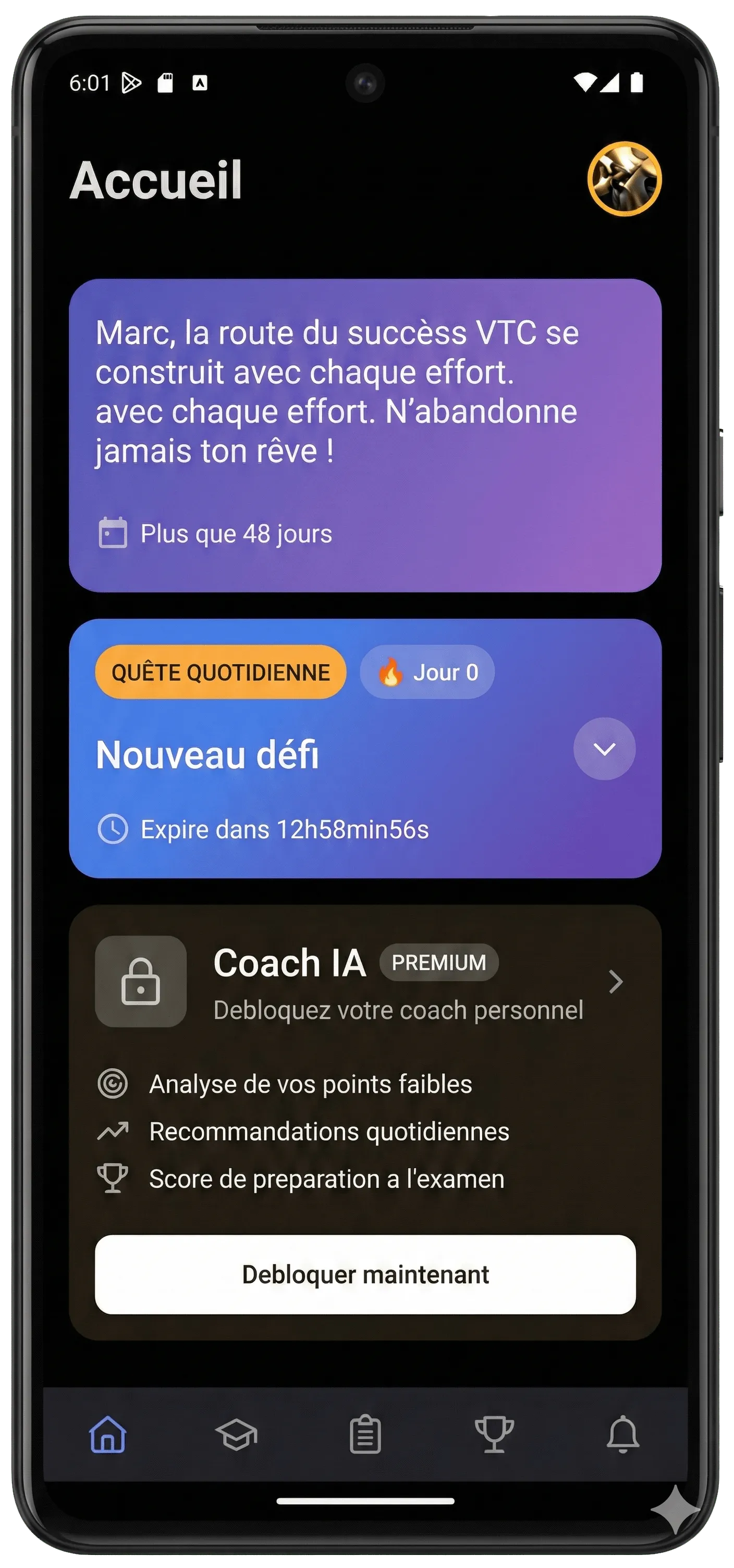Formation, QCM, examens blancs et coaching IA réunis dans une seule application.